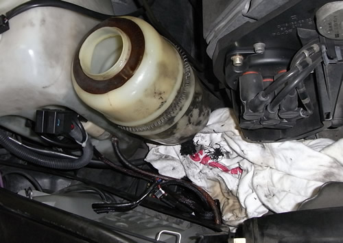 レベオイルとパワステオイルを入れて完了です。これでオイル漏れは大分収まったはず。