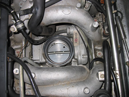 エアマス外したらスロットルアクチュエーターが見えました エアマスとのラバージョイント外すと5mminhexボルト4本でスロットルアクチュエーターが外せます。 |
