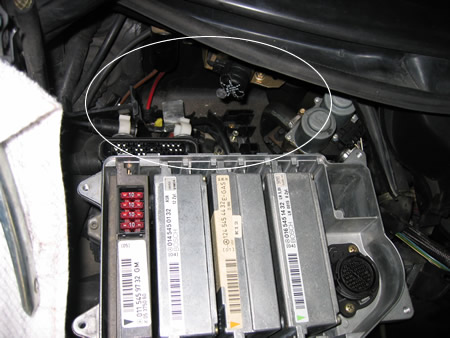 ポジティブケーブルも被服がボロボロ コントロールモジュールBOX奥に配線の起点がありアクセスはやりやすいです。 ここからエンジンルームへと配線が伸びます。POSケーブルはバルクヘッド→セルモーター→オルタネーター→オイルプレッシャー/オイルレベルセンサーへと配線が伸び交換はそうとう厄介です。 |