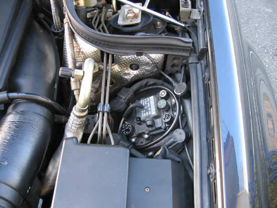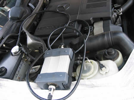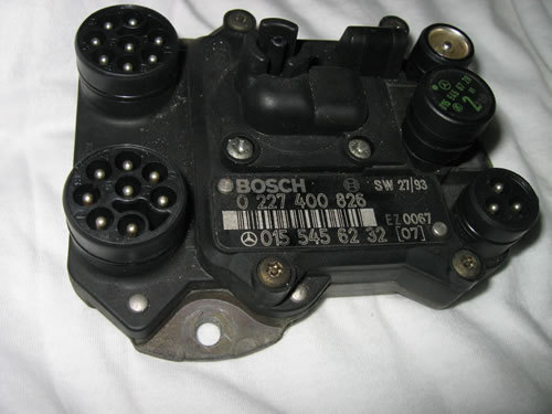 とりあえずガレージまで動かすにもエンジン始動しないことには・・・。冷静に考え同じエンジンのSL500から部品を借りることを思いつきました。E500LTDに付いていたEZは015 545 62 32(BOSCH)。バッテリーの端子外してからこれを外し SL500に付いていた015 545 61 32(SIEMENS)を移植。