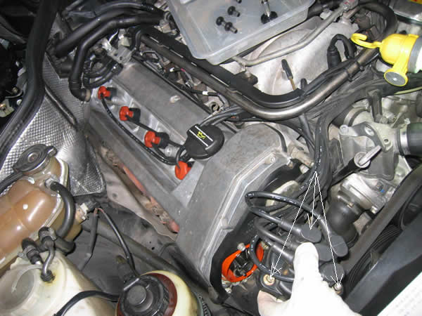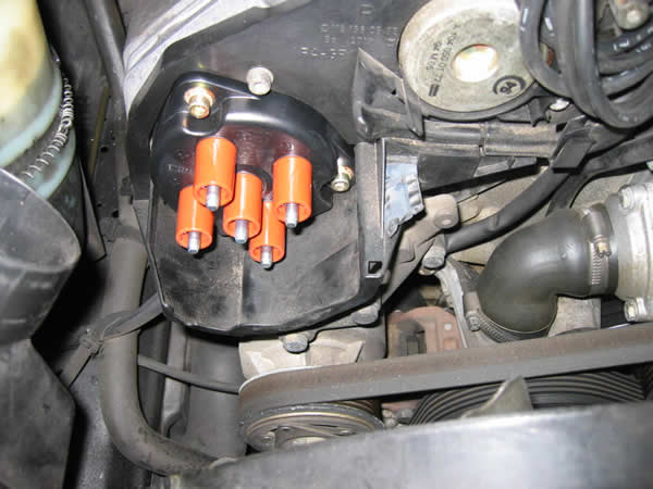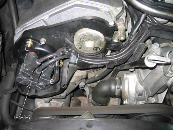 最初に付いていたハイテンションコードの取り回しを参考に1本ずつ交換していきます。