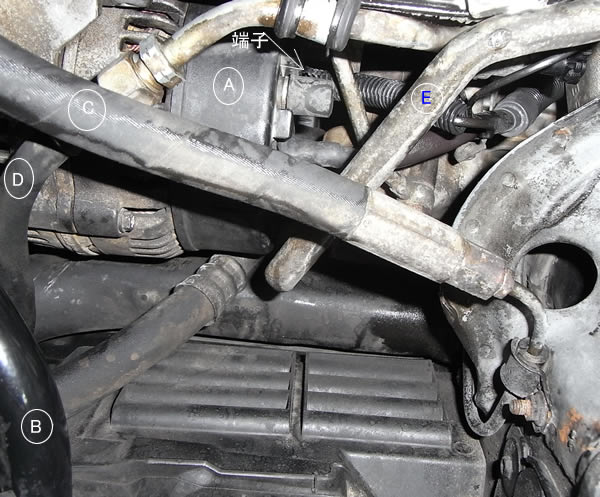 W124 E500オイルパン付近からのオイル漏れ・オルタネーター分解修理・スタビブッシュ交換 104920km 2010.5.23