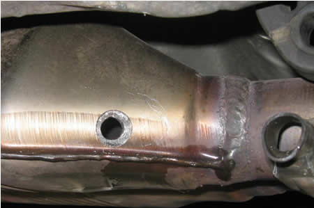 ホルソーで穴を開けましたが触媒はステンレス2重構造です。 |