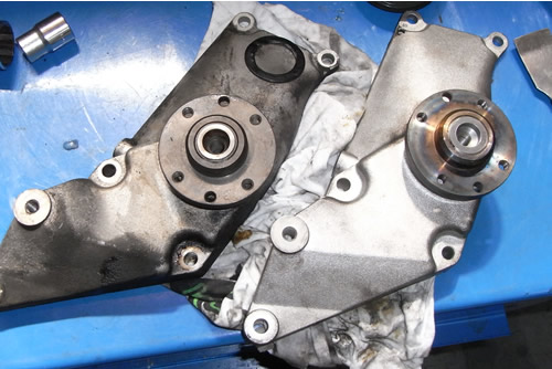 左が外したブラケットで右が新しいベアリングを組み込み完成したもの。その方法とは・・・