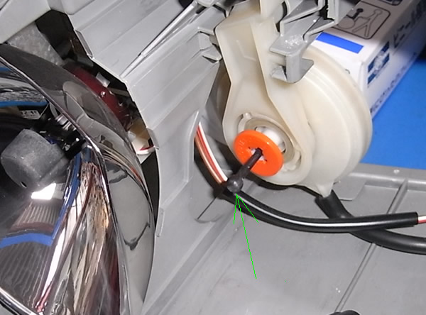 ライトのウラ蓋外して点検すると上下調整のアクチュエーターが脱臼していました