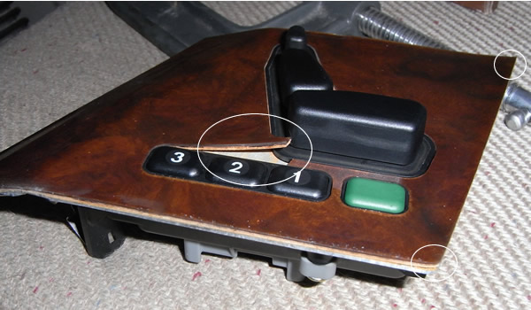 同時にパワーシートスイッチのウッドパネルが割れていて浮き上がっていました