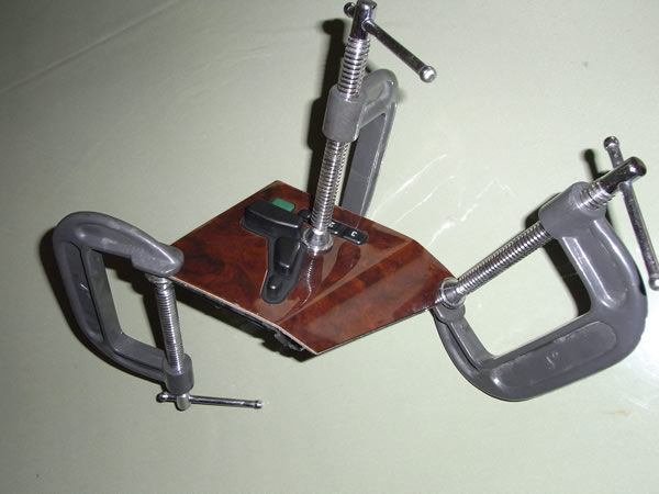 2液混合のエポキシ樹脂接着剤を使いクランプで固定