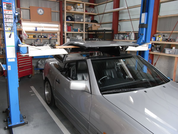 リフトを使ってハードトップを外しました。これなら一人でも可能です