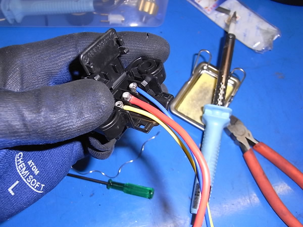 スロットルアクチエーターの配線はヒビがあり ボロボロでした。これもリペアに発送しました。