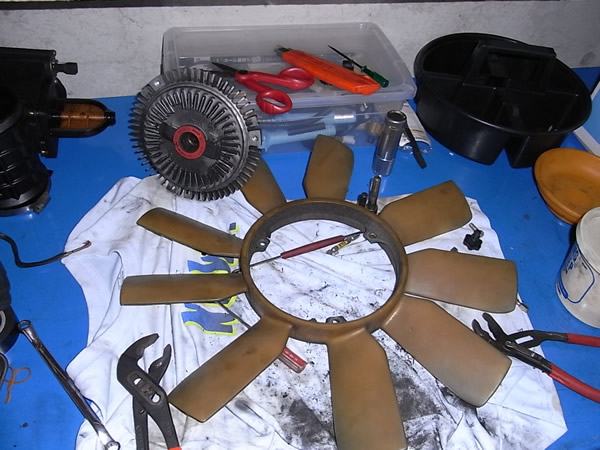 これを外すためファンを外しましたがビスカスファンクラッチのボルトHEXの穴が「なめた」ままになっていました。