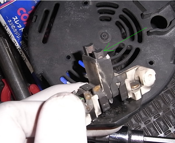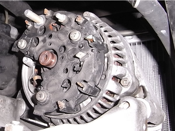 オルタネーターも点検。ベアリングは大丈夫ですがブラシが使用限界でした