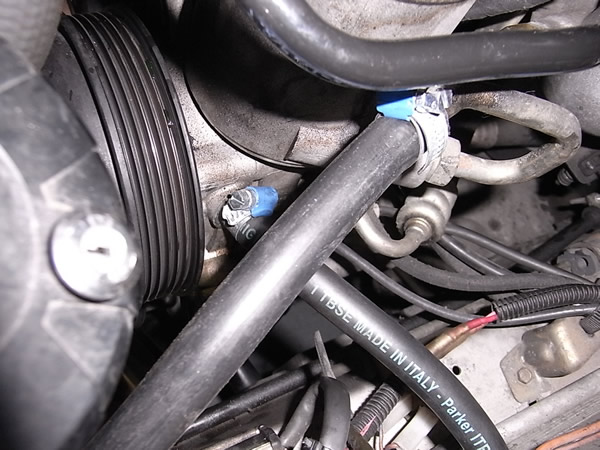 交換後。ホースバンドも より確実なホースを痛めずしっかり締まるものへ交換しました。