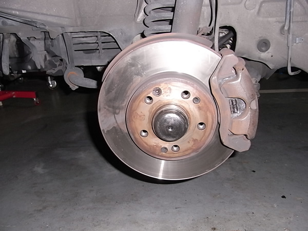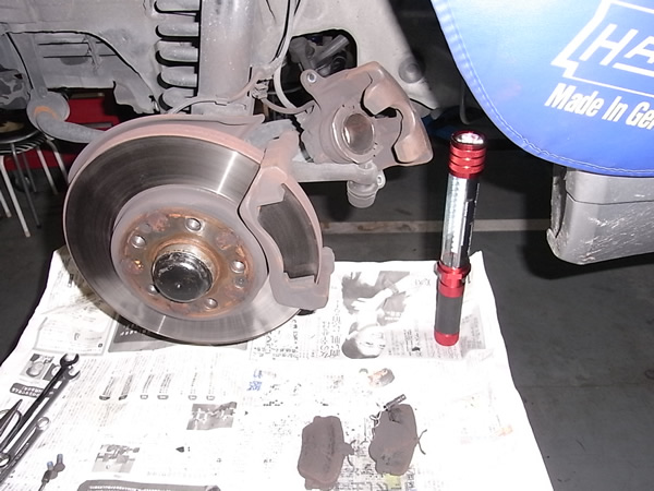 左 フロントキャリパーは ヒートシールドが間違ったミゾへ入っていました。清掃後 修正