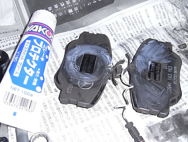 リアブレーキも 同様 ダストの清掃 ドエルピン スプリング パッドとひたすらお掃除。こちらもワコーズ ブレーキプロテクター塗布。