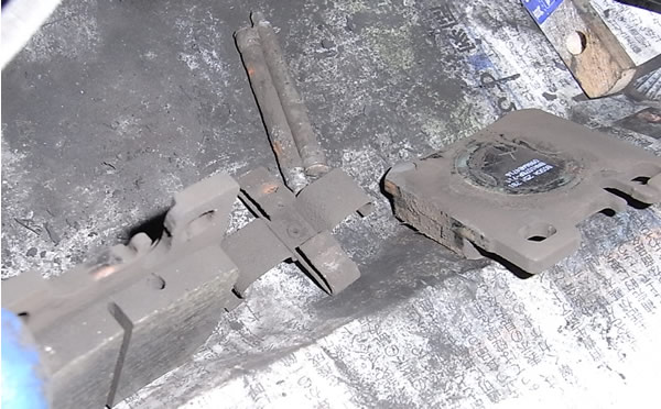 とにかく 地道に カリカリとブレーキダストを除去します。丁寧に取り除けばパッドの動きも良く鳴きにくくなります