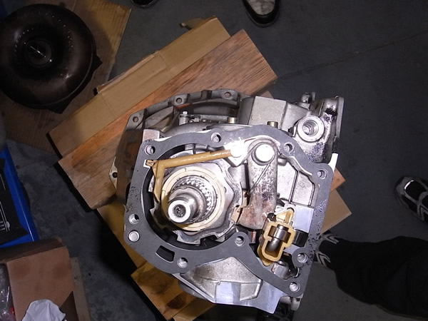 オイルまみれで激しい汚れ。以前、エンジンオイルの漏れがあったようなので その汚れがATケースまで及んでいました。
