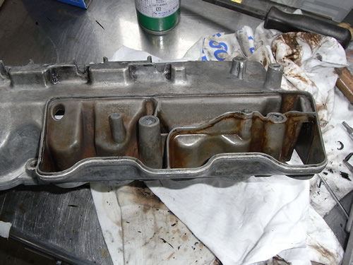 ブローバイケース古いシーラント除去 洗浄
