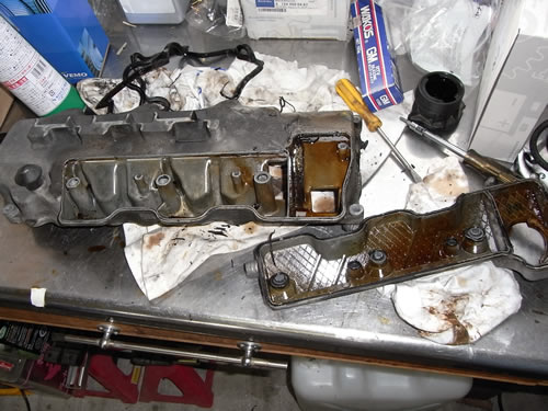 W210 E320avantgarde ヘッドカバーからのオイル漏れ修理 2009.10.27 141268km