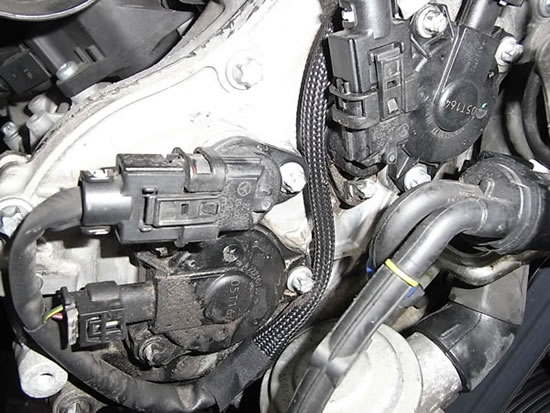 観察するとカムアジャスターを動かしているソレノイド周辺からオイルのにじみがあります。