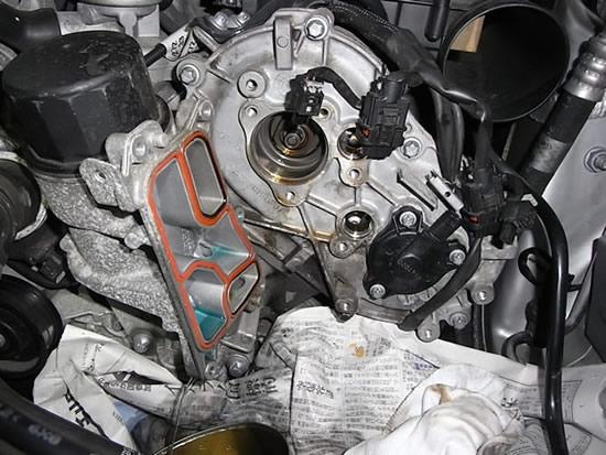 ヒートエクスチェンジャーハウジングも外しました。当然エンジンオイルとLLCも抜いてあります。