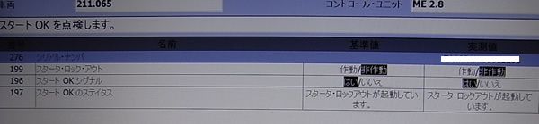 6,ME2.8の実測値 スタートOKを見ていると MEユニットのシリアルナンバーとスターターロックアウト信号が消え表示が横棒だけになる