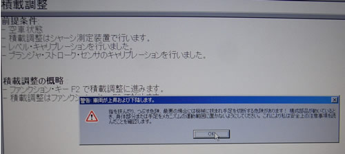 初期のW220などは ここでキャリブレーション完了しますが今回のW215は「積載調整」も必ず行います