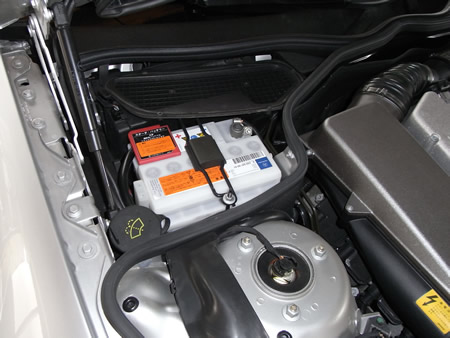 まずエンジンルームのスターター用バッテリーの-端子外し。