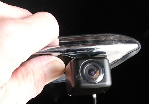 こんな感じでメッキモール部分ににカメラを取り付ける |