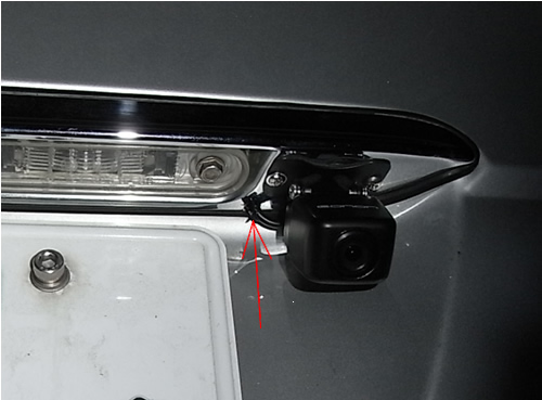 トランクリッド裏側・・・カメラの配線は矢印あたりから引き込んでいます |