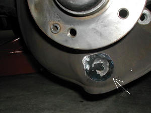 ここはサンダーで削り塗装。ローターとの間隔は約1mm程度です。ローターと当たるハブ面もキレイに磨きました。 |