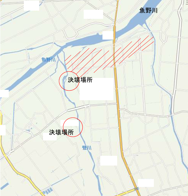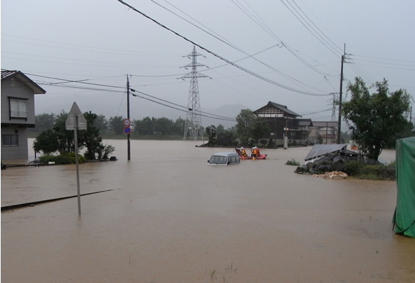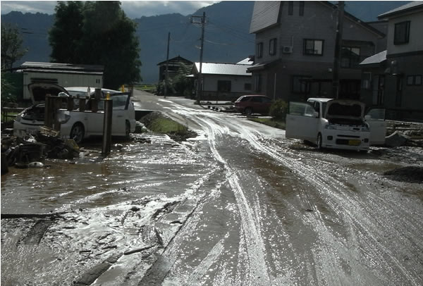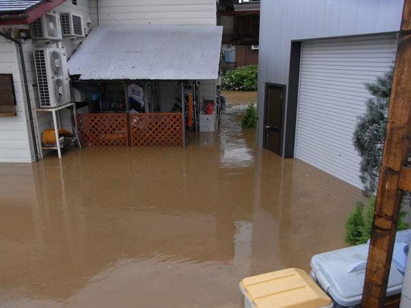 平成23年7月27日から新潟・福島豪雨では、各地で記録的な降水量となり、多いところで1000ミリを超え、新潟県内では6つの河川の9か所で堤防が決壊するなどの被害を受け、各地で復旧作業が続いています。私も決壊した堤防が近くにある南魚沼市在住でコメ(水田)には大量の土が流入し、本業のお店も床上浸水となってしまいました。場所は新潟県南部で下右画像の○が決壊箇所で赤い斜線部分が水没箇所です。