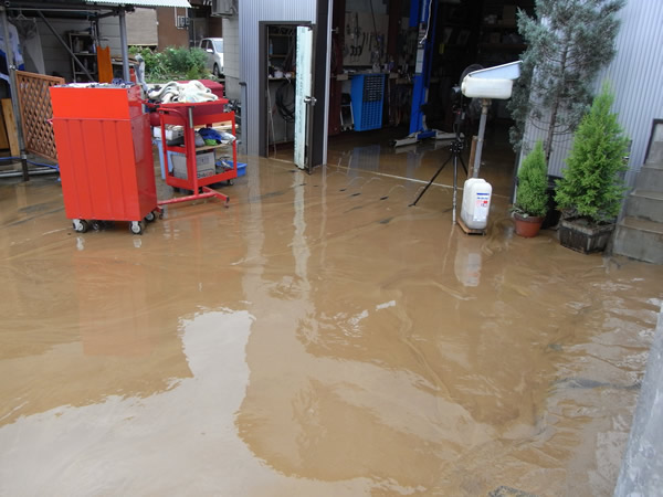 お店の中からキッチンまで床上浸水で水が引けたら泥の海でした。