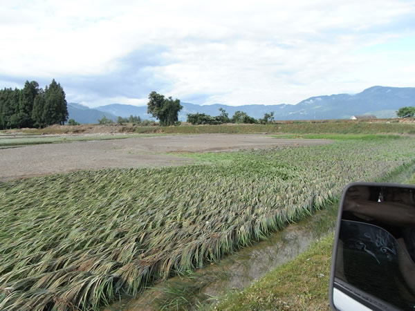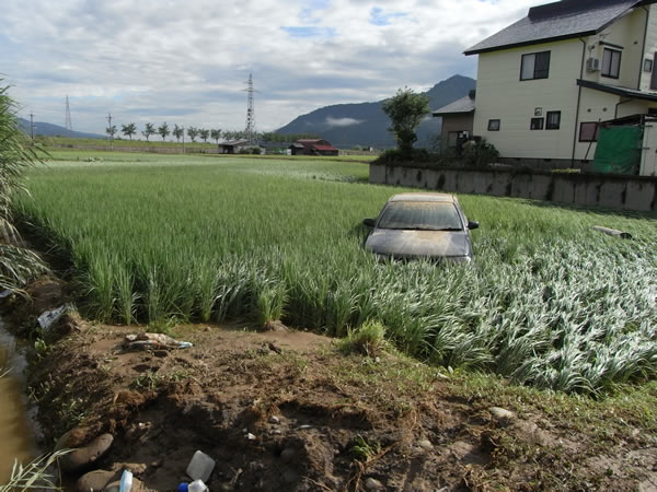 今回の洪水は6年前から地元の皆さんで市へ河川改修の願いをしていましたが却下されてきた問題箇所でした。その危険箇所がついに決壊したと言う顛末です。