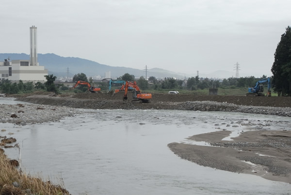 決壊現場では今も急ピッチで河川改修。これを豪雨の前にやってさえおけば・・・・