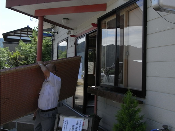 8月7日:地元自治会で臨時会議を開き復興への話し合いのあとドロの撤去作業やりました。猛暑の中皆さん大汗をかいて頑張っていました。