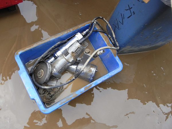 エアーコンプレッサー、スポットクーラー、エアーインパクトレンチ、ディスクグラインダー、エアーラチェットなども水没 使用不能に