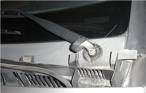 ワイパー基部のカバーめくり13mmナット外します