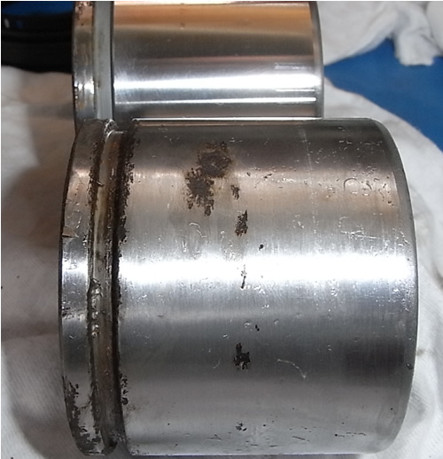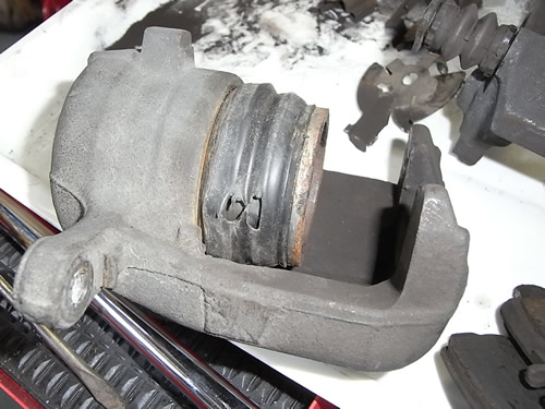 外したピストンはサビが深く修復不可能。ヤフオクで程度のよい中古キャリパーを見つけ購入。