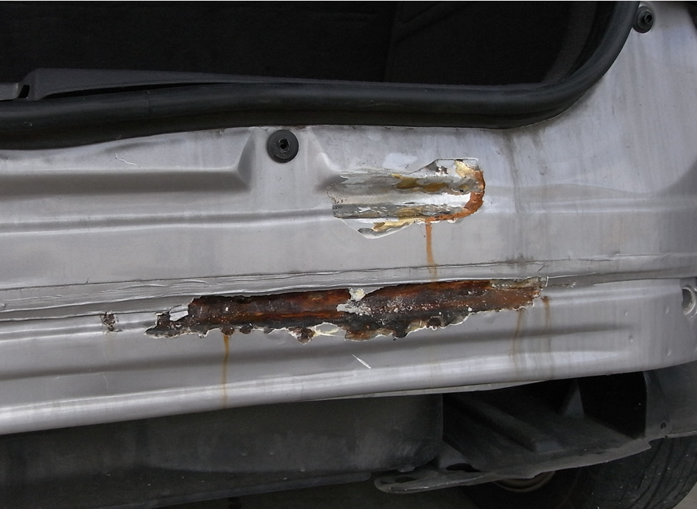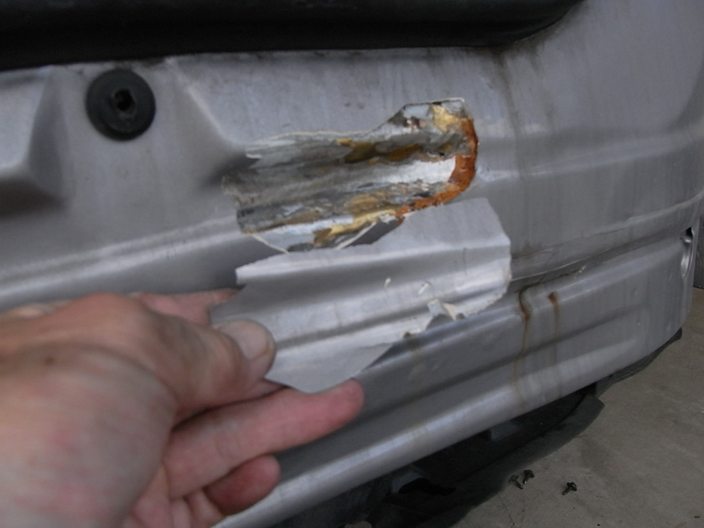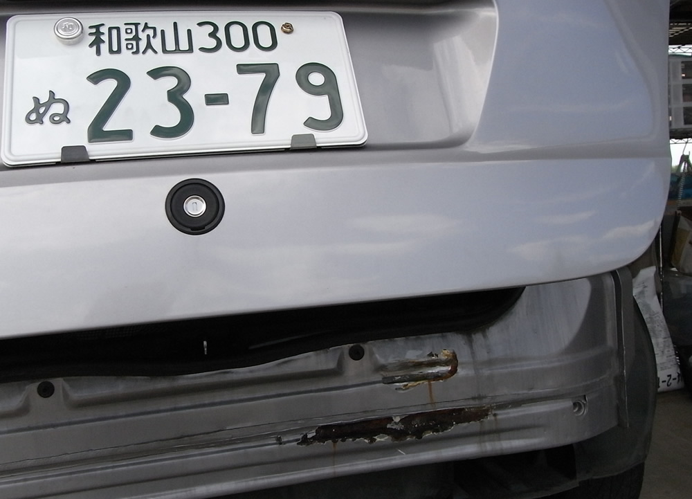 このままですと、すぐにリアエンドパネルに穴が開き大変なことになると言われました。板金工場で要修理です。