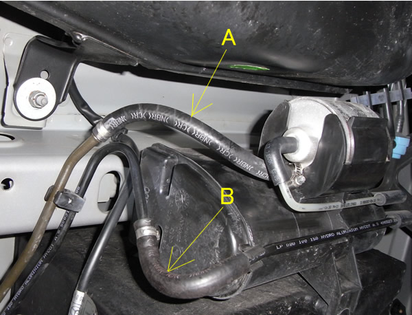 Aのホースを良く観察すると細かなヒビがありアンダーカバーにはガソリンらしきシミが・・・