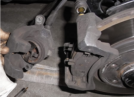 パッド外して裏側からもドライブシャフトブーツや各部チェックしました。