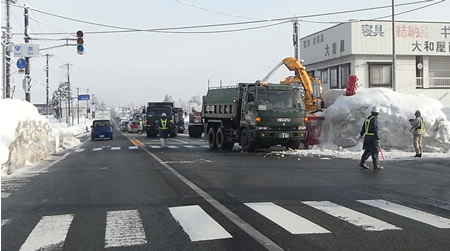 −4℃ の中除雪をみながら検査場に向かいます。路面に雪がないので助かります。