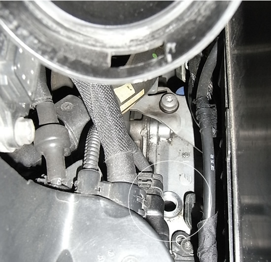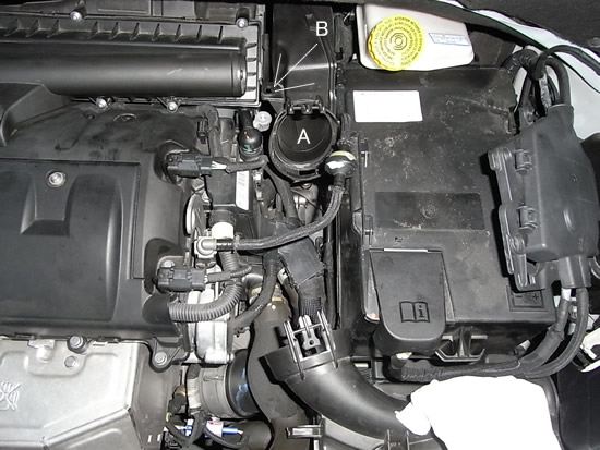 まず、インテークエアダクト外して 画像Bのボルト外すとAのダクトを上にずらすことができました。これで手が入るスペースをちょっとだけ作れます。