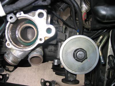 サーモスタットカバー、サーモスタット、ウオーターポンプのコネクターと各センサー外します。 サーモスタットカバーのOリングはウオーターポンプに付属(要交換) 各センサーのシールリングもウオーターポンプに付属(要交換) 関連の作業はこちらです |