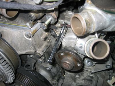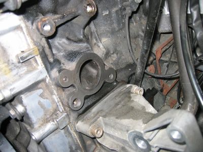 ここはL型にメガネレンチかけて緩めた ウオーターポンプをシリンダーブロックに固定する4本のボルトですが ここのように通常のトルクレンチでは入らないので経験と感で締めました。規定値は21Nmです。