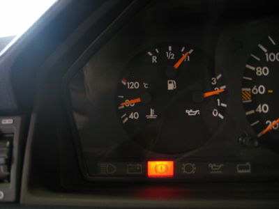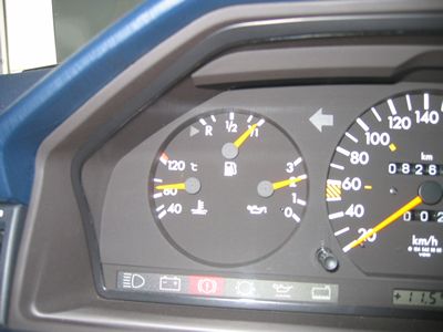 エンジン回っています。全体に静かになった感じもします。(^^) 徐々に水温も上昇しますが 水温計の針がこの位置になっても電動補助ファンが回りません。
