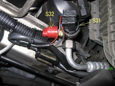 まずはレシーバードライヤーに付く2種類のプレッシャーSW交換 S31は締め付けトルク20±4Nm Oリングは付属でコンプオイルを薄く塗布しておきます。役割はコンプレッサーへの信号 2.6kg/cuでON 2.0kg/cuでOFFとなります。 S32は締め付けトルク10Nm Oリングは付属でコンプオイルを薄く塗布しておきます。電動補助ファンStage1用で赤い色なので15.5kg/cuでON 10.5kg/cuでOFFとなります。(2004年秋、このSWが壊れていた)