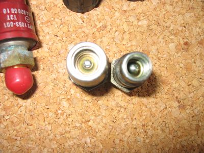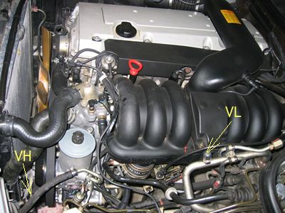 チャージバルブの交換,高圧側 低圧側両方の交換です。 [VL]は低圧側、漏れが多かったところ。 低圧側は内部から虫を押す力も低いのでシールしているゴム部分の密着も 弱く漏れる可能性が高いと思います。まただHFC134aのサービスバルブは虫のみの交換が出来ず「バルブASSY」の交換に なってしまうのが痛いですね。(定価は低圧\2570 高圧\2610) [VH]は漏れていませんでしたが念のため交換しました。 いずれもOリングは付属していてコンプオイルを薄く塗布して締めこみました。 |