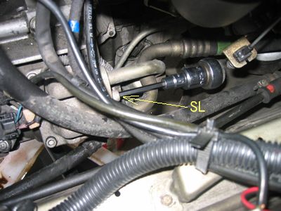 A/Cコンプレッサーの取り外しにかかります。 まずはサクションホースとの接続部分 M8のボルト{SL}を緩むか確認>ちゃんと回りました。 締め付けは23Nm±2.3Nm |