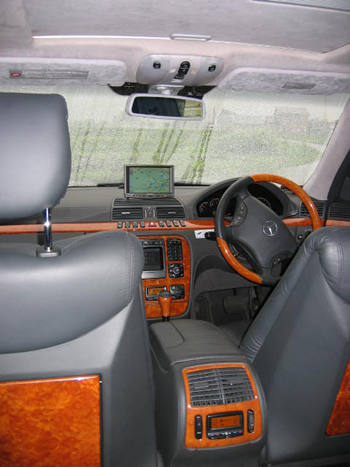 めったなことでは座れないS55Lのリアシートから。 チェストナットのウッドがふんだんです。 ダッシュ上のNAVIはパナソニック |